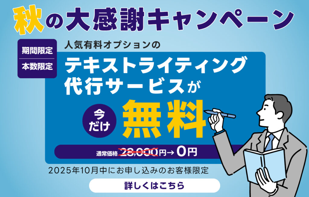 特典内容:通常 28,000円の「テキストライティング代行サービス」が無料